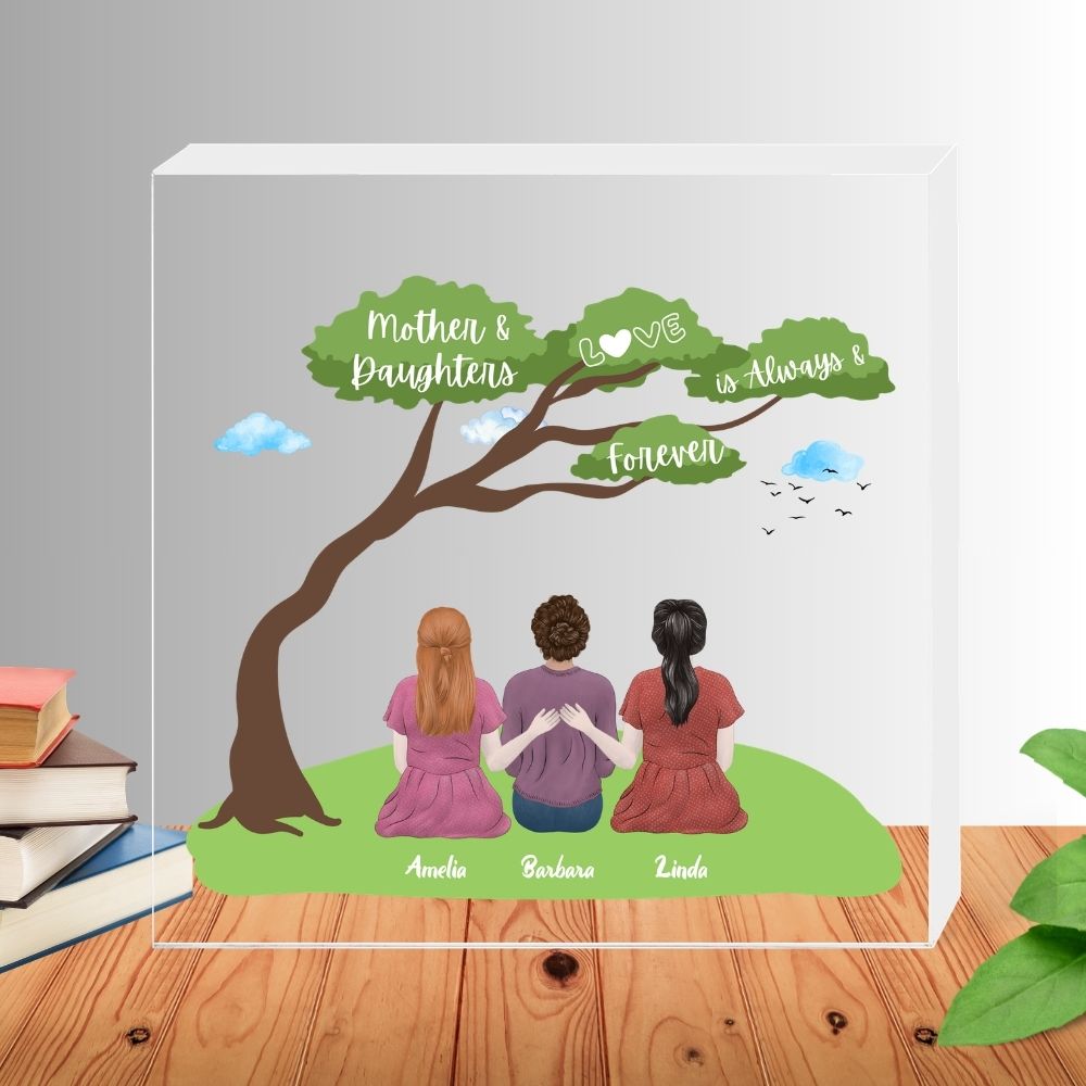 Illuminate the bond between mother and daughter with our stunning “Mother & Daughter - Love is Always & Forever” acrylic block. This beautifully crafted piece features a heartwarming scene of a mother and her daughter sitting together on lush grass, gazing up at a serene blue sky dotted with fluffy white clouds.